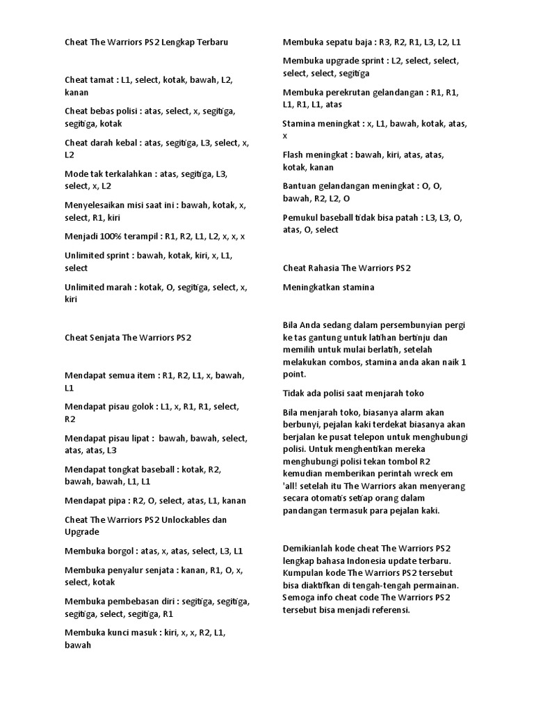Kode the warriors shop ps2