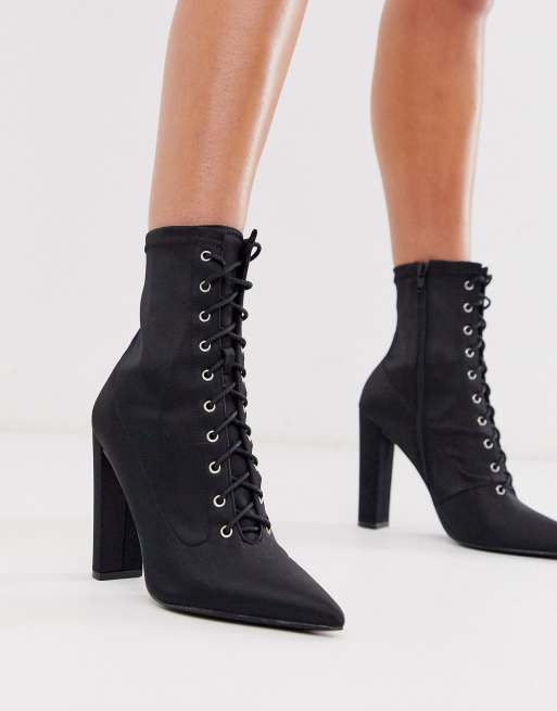 Black lace up shop boots with heel
