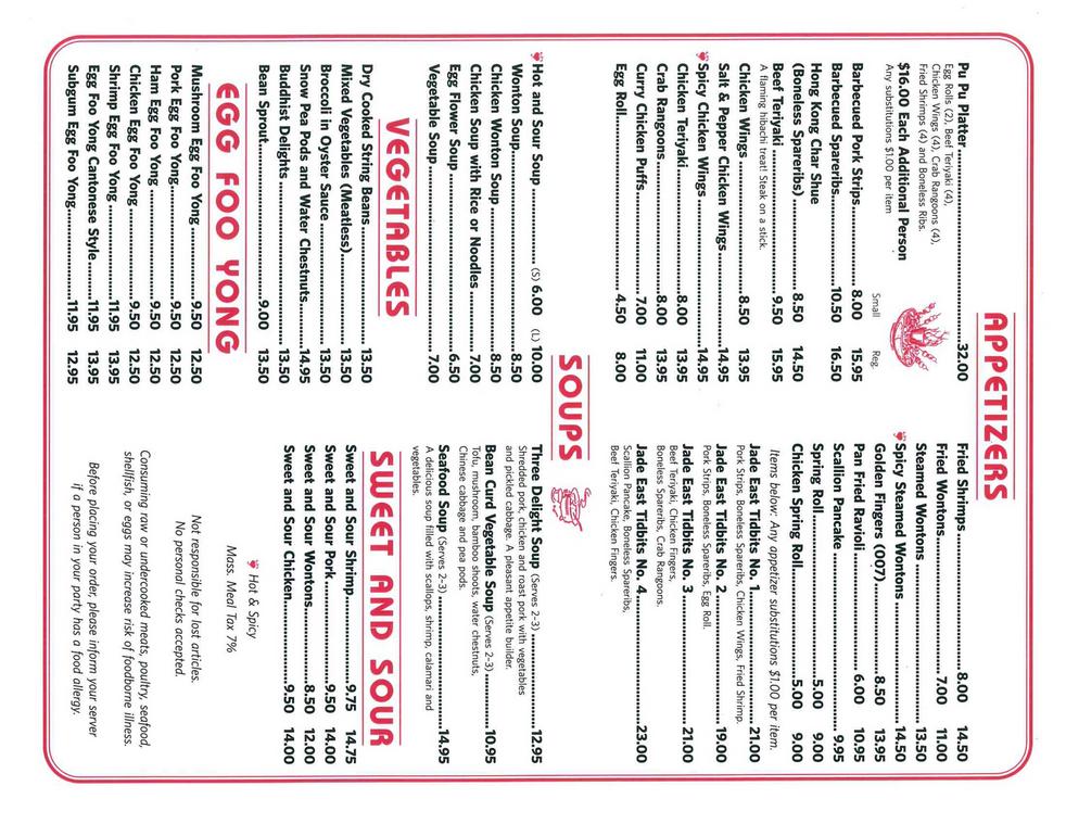 Product Item: Jade shop restaurant menu