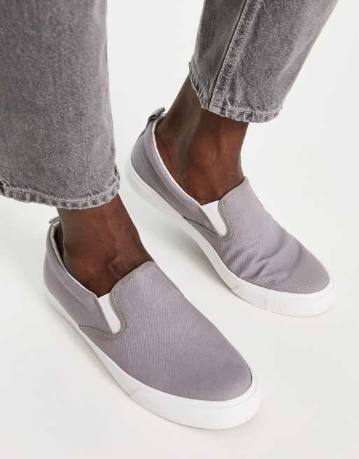 Grey canvas slip on shop shoes