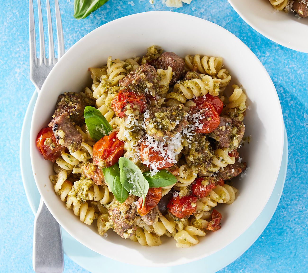Product Item: Pesto pasta with shop sausage