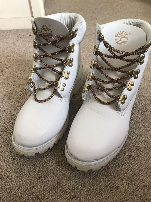 Product Item: White timberlands gold chain shop laces
