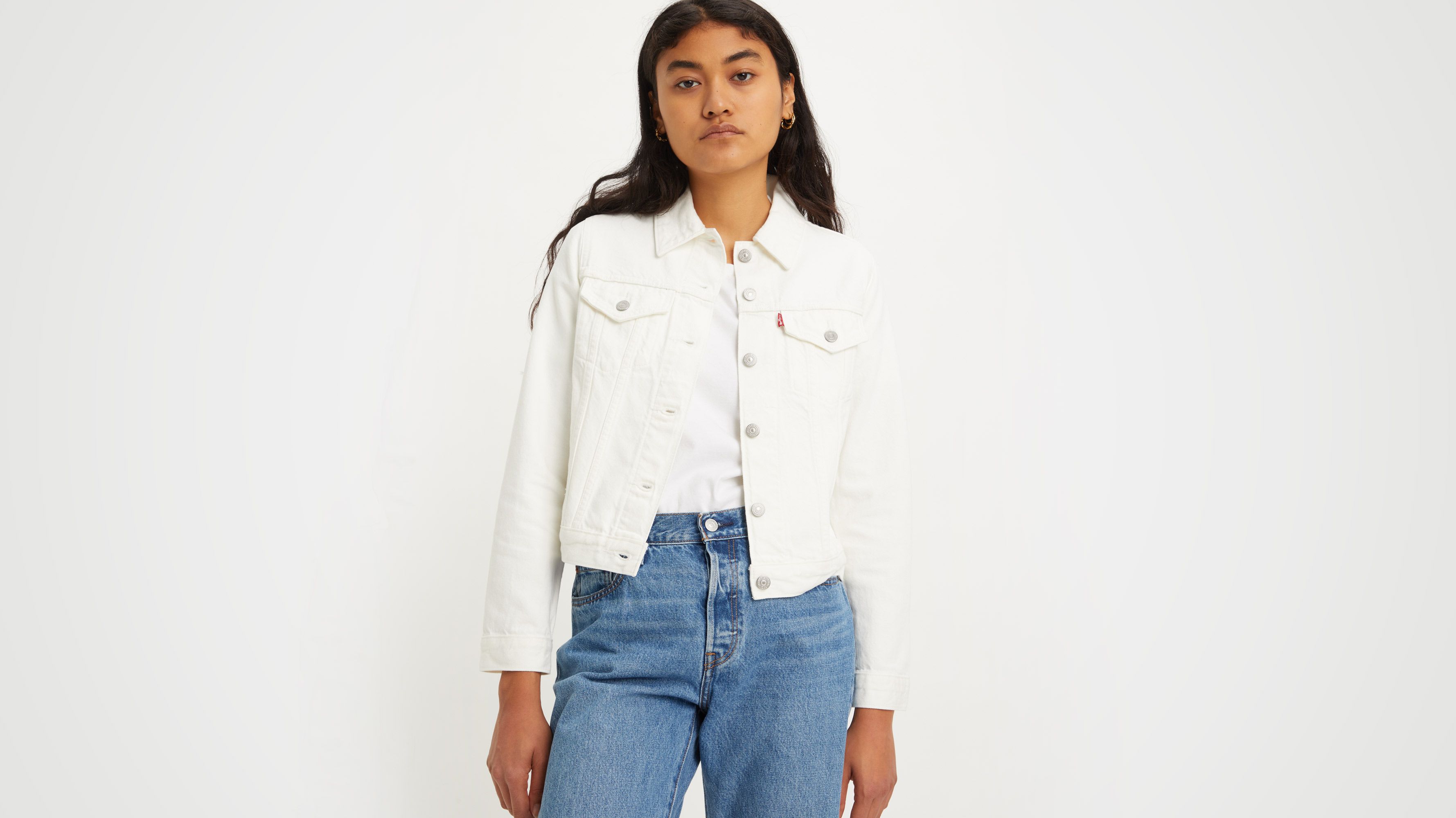 Product Item: Levis denim jacket white shop fur