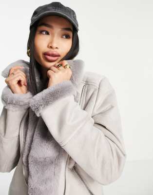 Hollister black shearling biker shop jacket