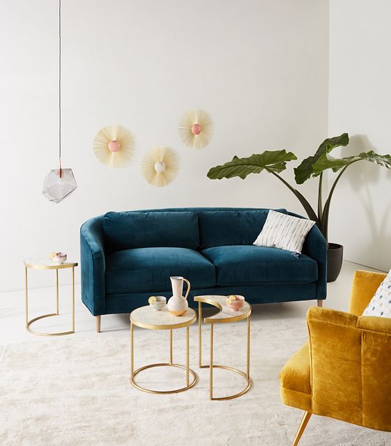 Product Item: Blue velvet couch shop anthropologie