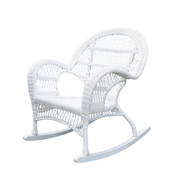 Product Item: White resin wicker rocking shop chair