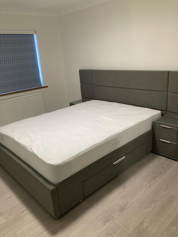 Product Item: Bed frame with shop side tables attached