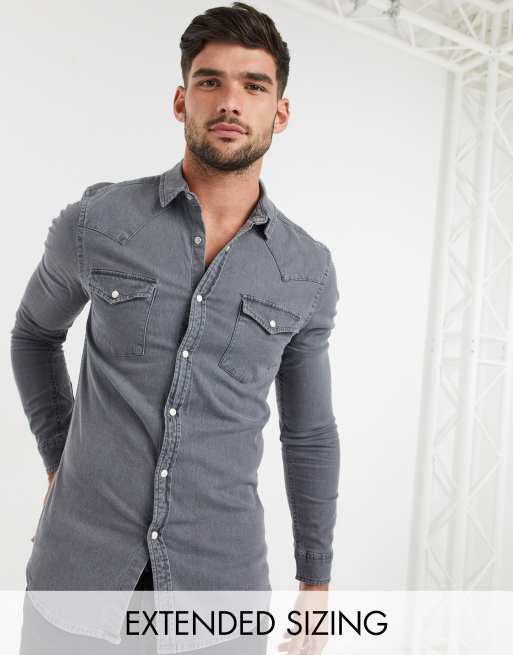 Slim fit denim shirt shop mens