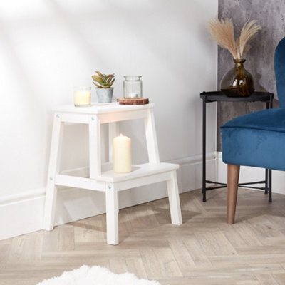 White wooden step shop stool