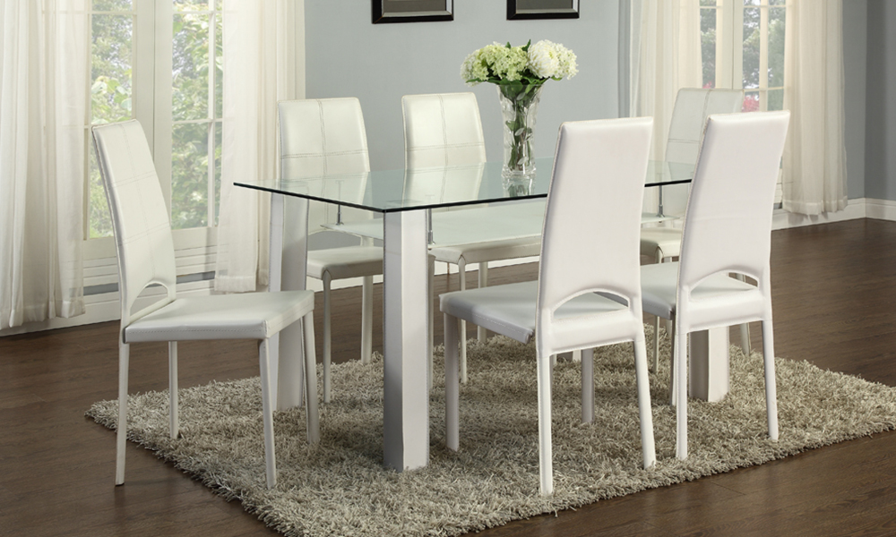 Product Item: Glass dining table shop with shelf underneath