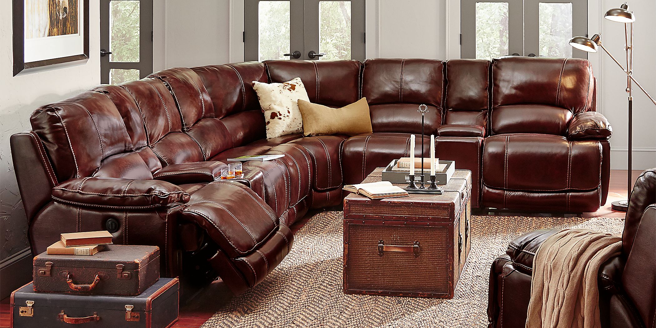 Burgundy sectional leather shop sofa