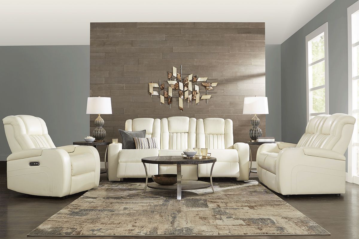 Ivory leather living room shop set