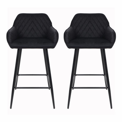 Black crushed velvet bar shop stools