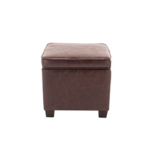 Product Item: Dark brown faux leather shop ottoman