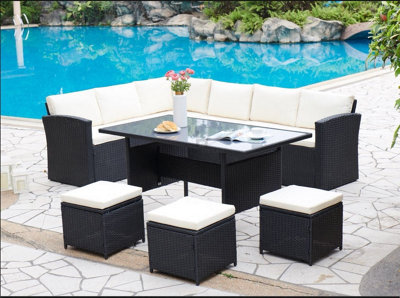 Rattan corner sofa and shop stool dining set