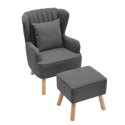 Grey wingback chair with shop ottoman
