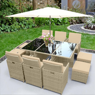10 seater rattan garden shop furniture with parasol