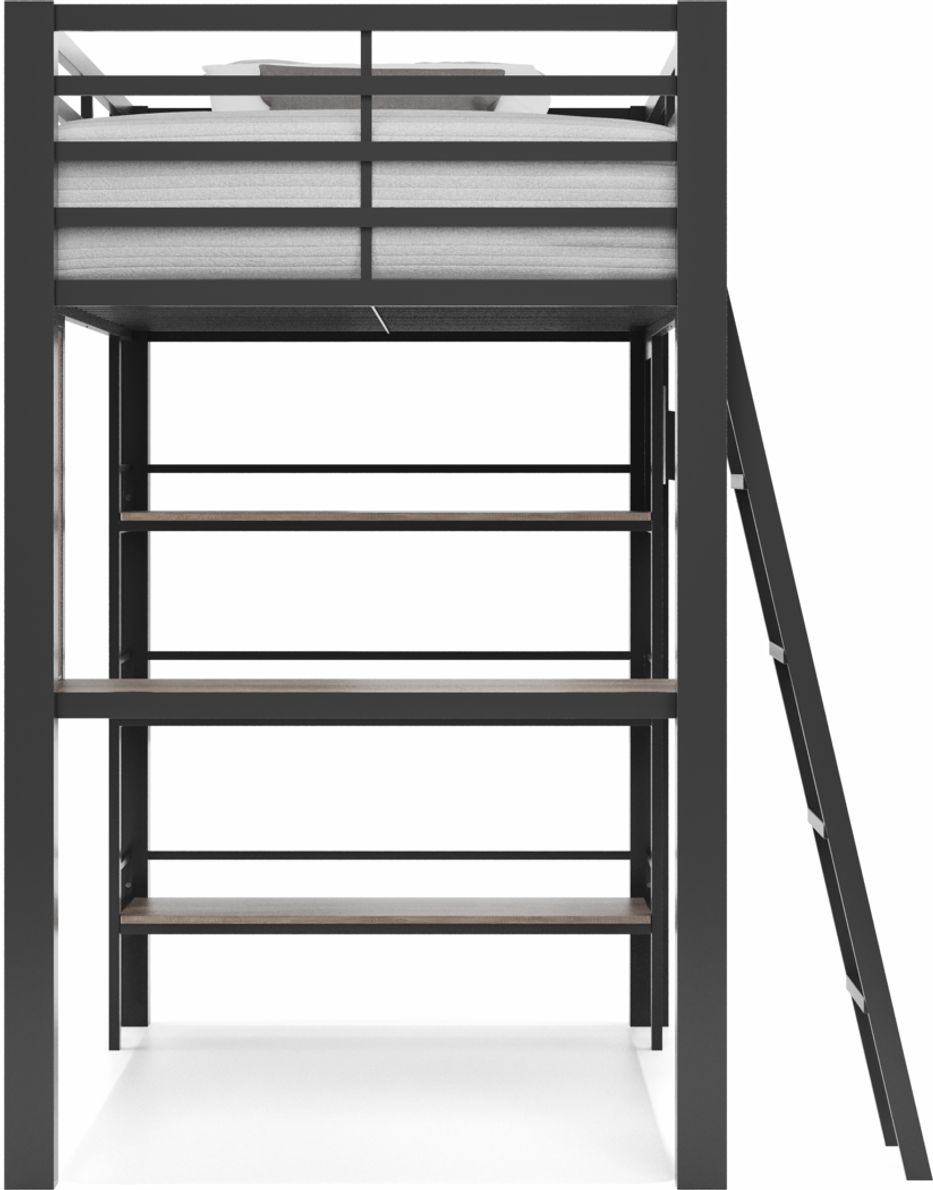 Colefax avenue gray twin loft bed with desk and shop bookcase