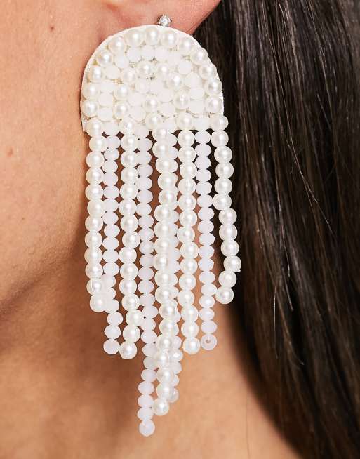 Pearl shop tassel earrings