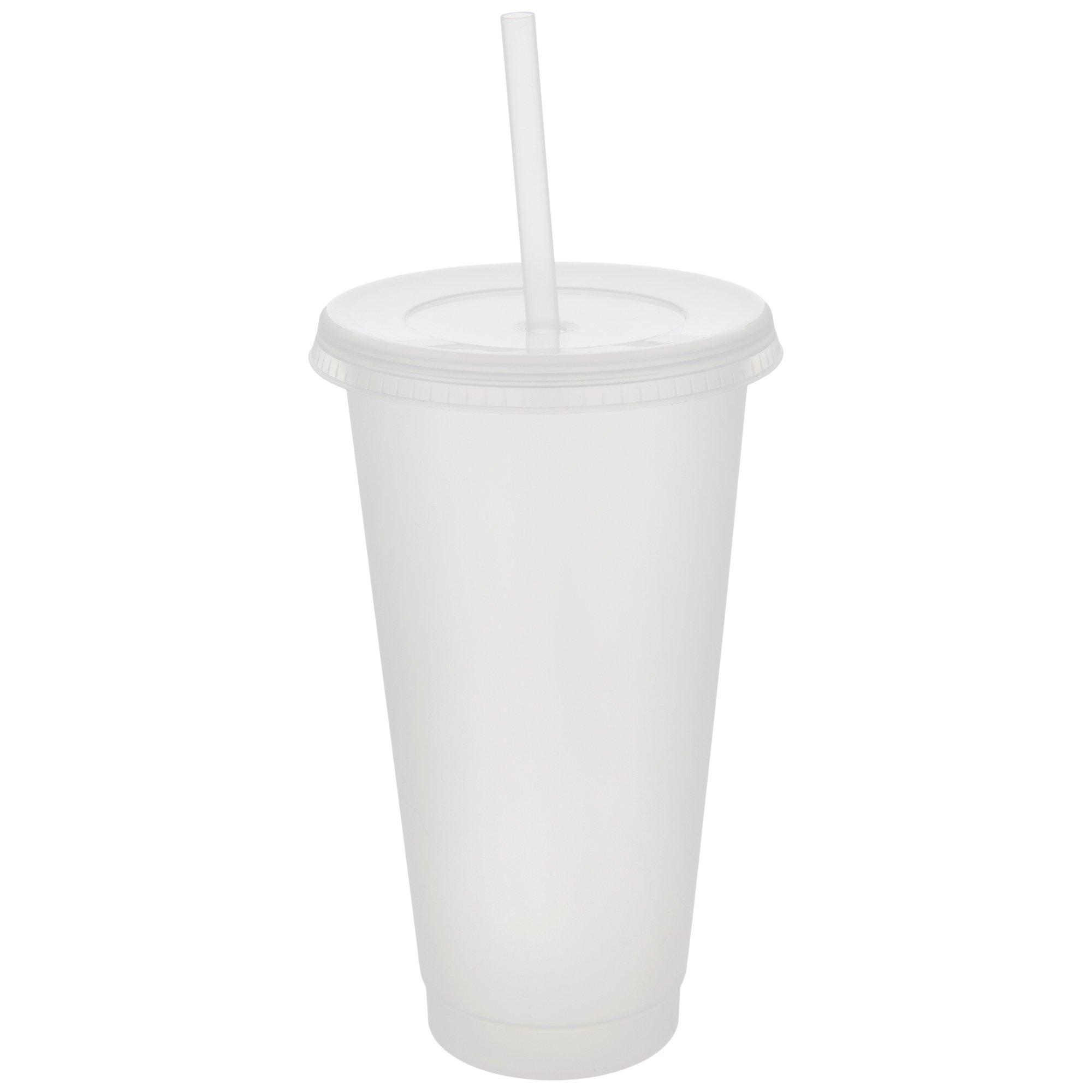 White plastic cups with shop lids and straws