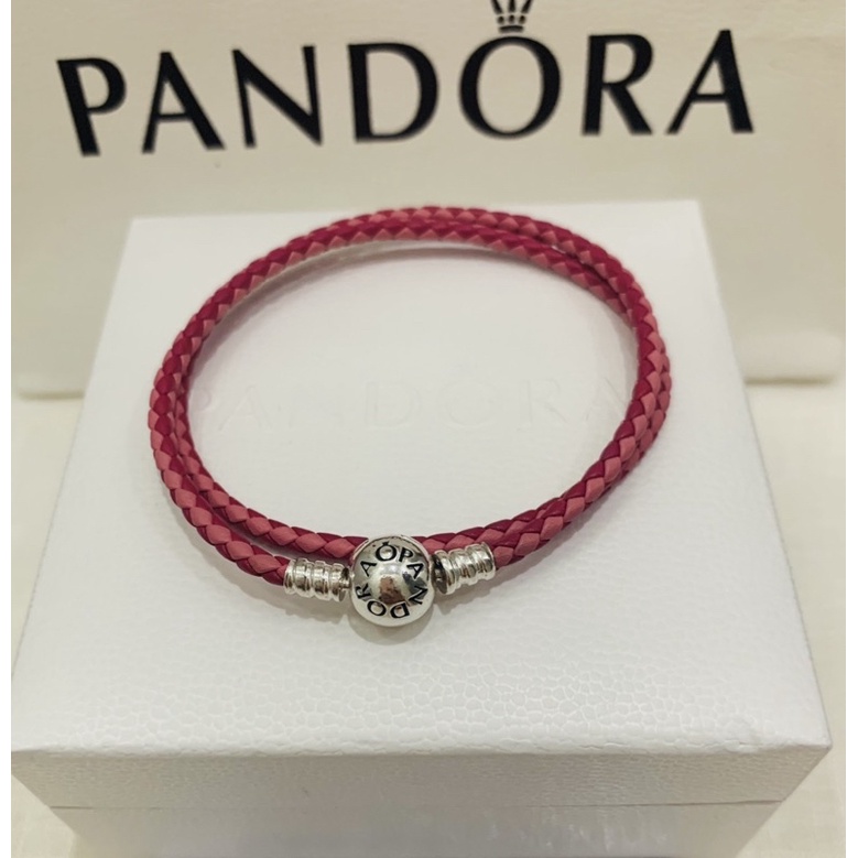 Product Item: Pandora moments pink double shop woven leather bracelet