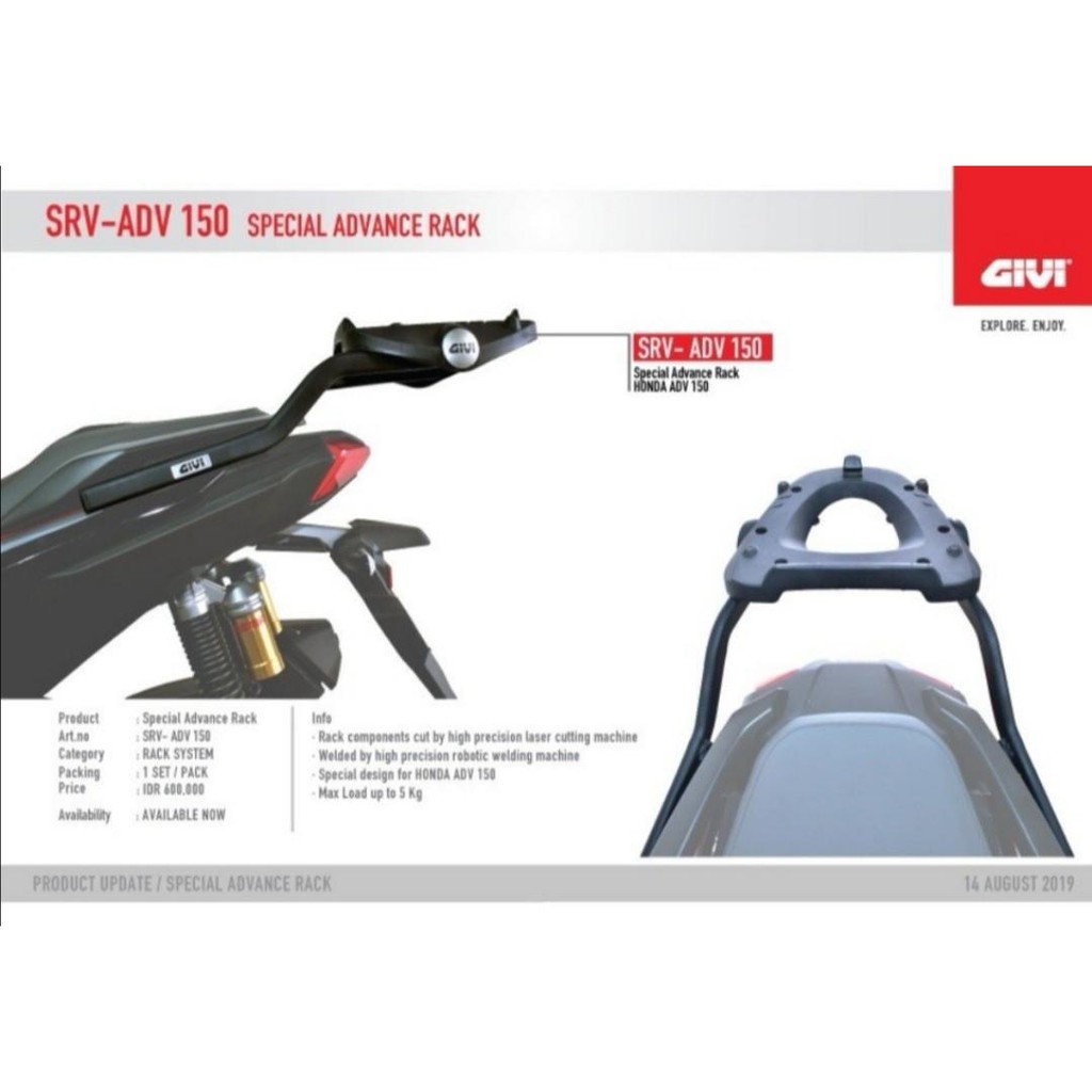 Product Item: Honda adv 150 givi shop rack