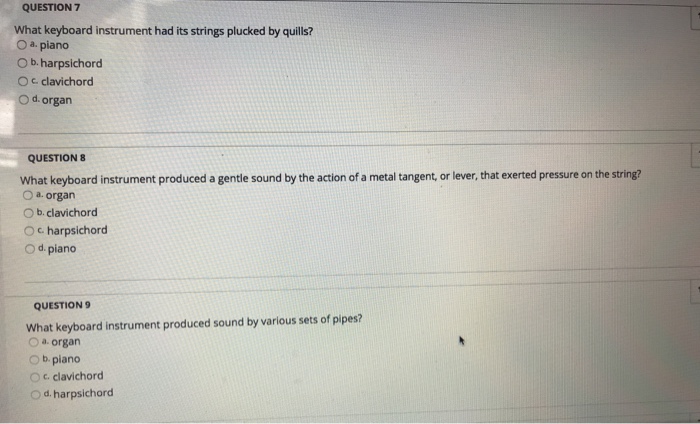 Which keyboard instrument produces shop sound with quills