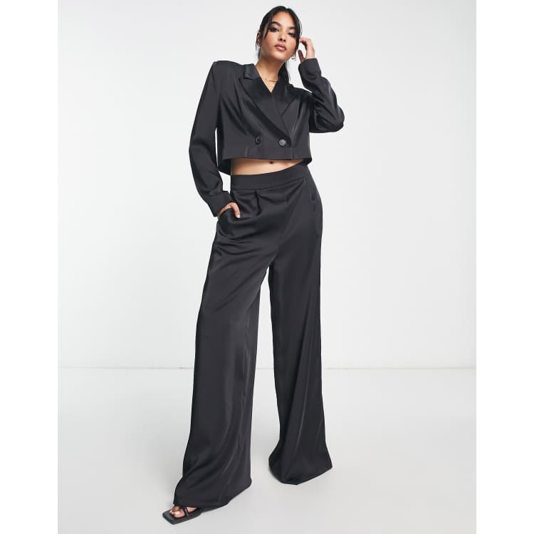 Product Item: Black satin cropped shop trousers