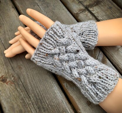 Product Item: Cable fingerless mittens knitting shop pattern